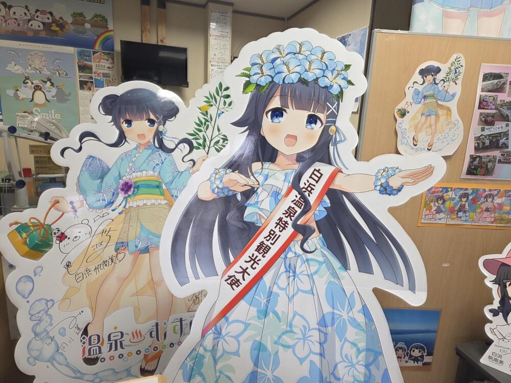 駅舎に入るとキャラクターのパネルが。ほなみさんではないな…?