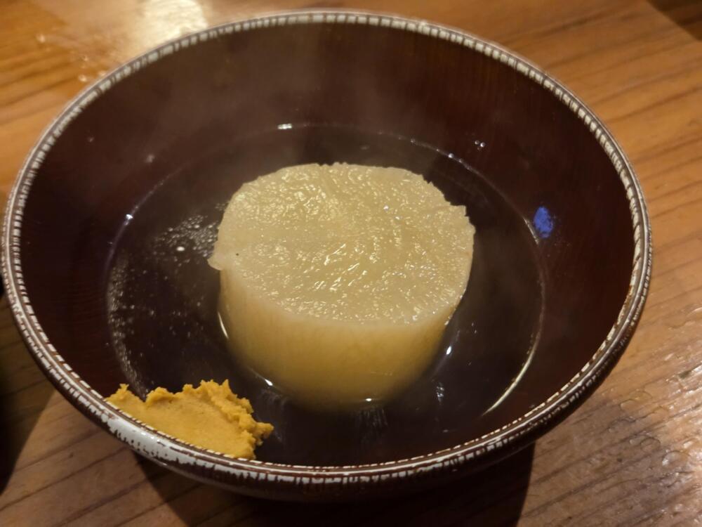 長久で、色々舌鼓をうったところだけども、一番美味しかったのが意外とおでんの大根。