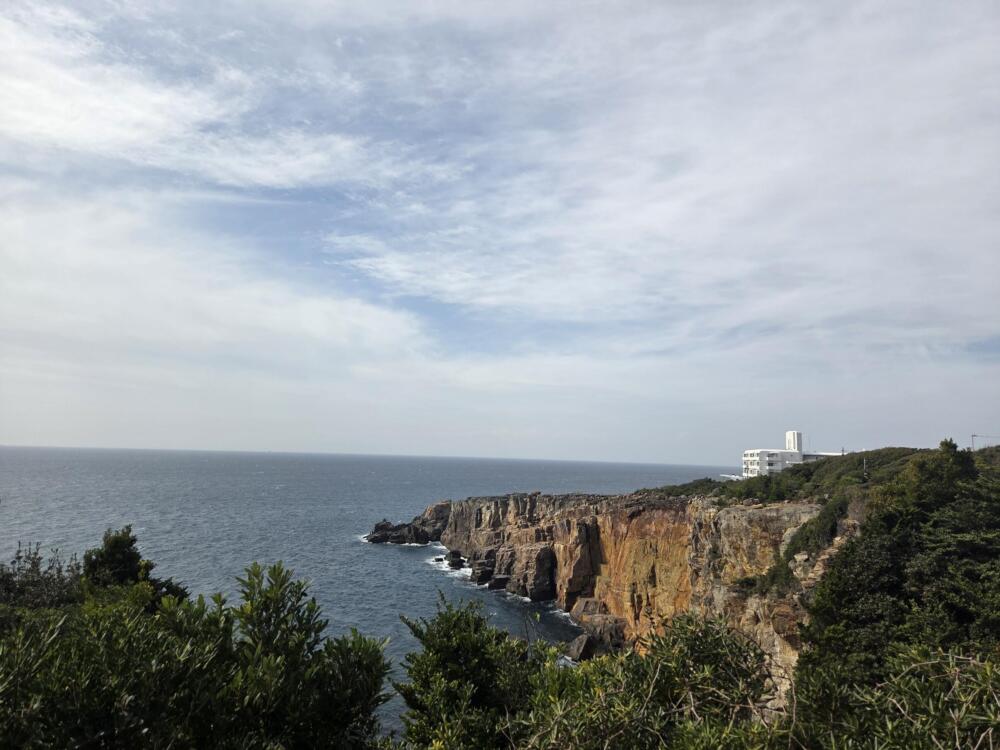 つきました。飛行機で移動してると急にきれいな海のそばまで移動していてびっくりしますね。三段壁はこのゴツゴツの岩肌が2kmくらい続いているとのこと。